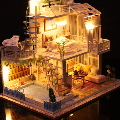 Xây dựng cô gái đồ chơi mini phòng công chúa tự làm nhà thủ công nhà nhỏ mô hình lắp ráp bằng gỗ - Chế độ tĩnh