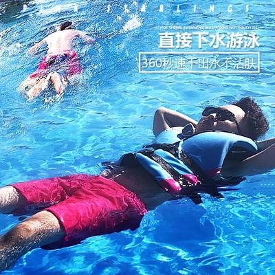 XL Trang chủ của phụ nữ Quần đi biển của nam giới Quần đùi rộng rãi của bố mẹ-con Quần soóc ba điểm của nam giới cotton lụa cộng với màu đỏ - Quần bãi biển