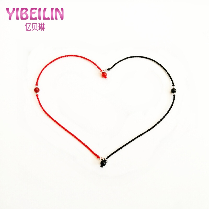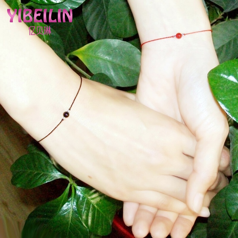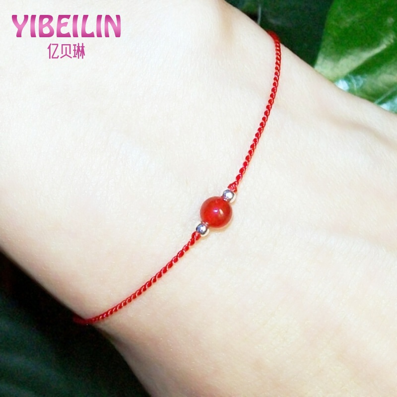 Yi Beilin bạc rất tốt dệt tay sợi dây màu đỏ dây đen vòng tay vòng cổ chân cặp nam nữ một cặp mã não rung - Vòng chân