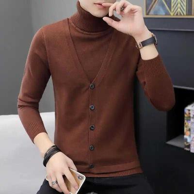 Yi Ni House 2019 new men slim áo len dài tay áo len thời trang cardigan giả hai trang phục nam - Cardigan