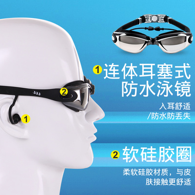 You kính bơi kính bơi chống cận thị độ nét cao kính bơi chống sương mù dành cho nam và nữ có gọng kính lớn mạ điện có nút tai kính bơi gửi mũ - Goggles
