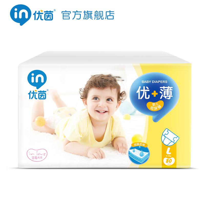 Youyin vòng eo siêu mỏng lõi đầy đủ khô thoáng và thoáng khí Tã trẻ em N L80 Tã dán cho bé trai và bé gái - Tã / quần Lala / tã giấy