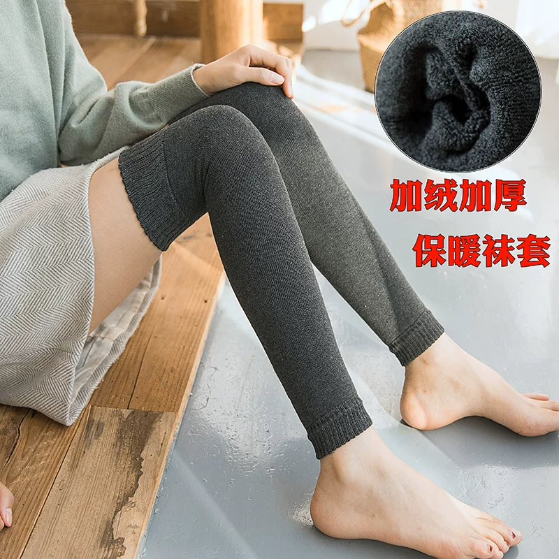 Tất thu đông phụ nữ dài trên đầu gối cộng với nhung dày ấm áp xà cạp đệm đầu gối màu đen ống cao mùa đông mùa đông tất cotton - Vớ bông