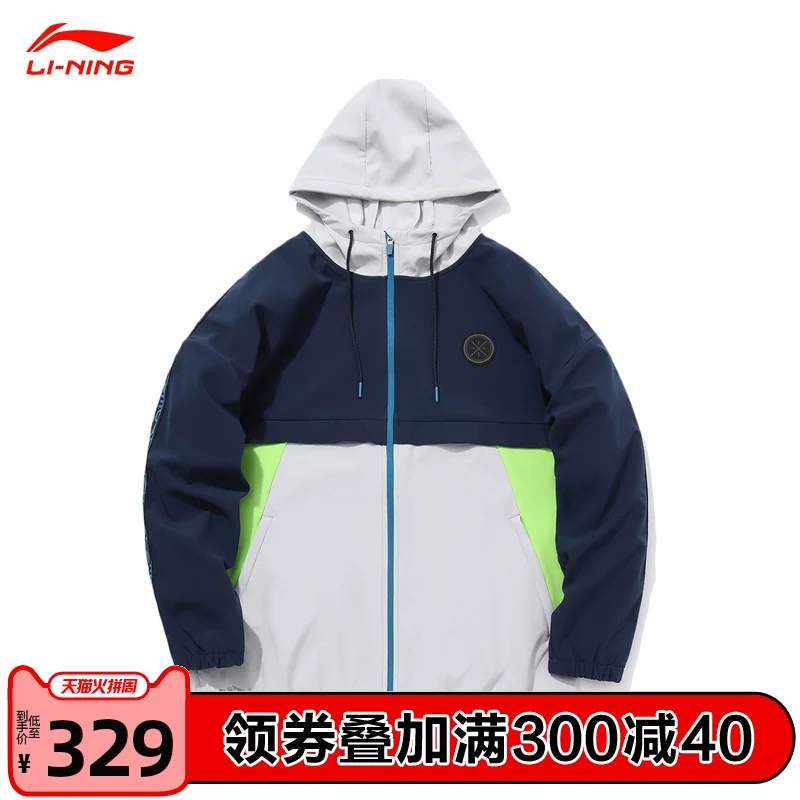 Li Ning áo gió nam BADFIVE dòng bóng rổ cardigan có mũ trùm đầu dệt lỏng thể thao mặc thường xuyên AFDQ373 - Áo gió thể thao