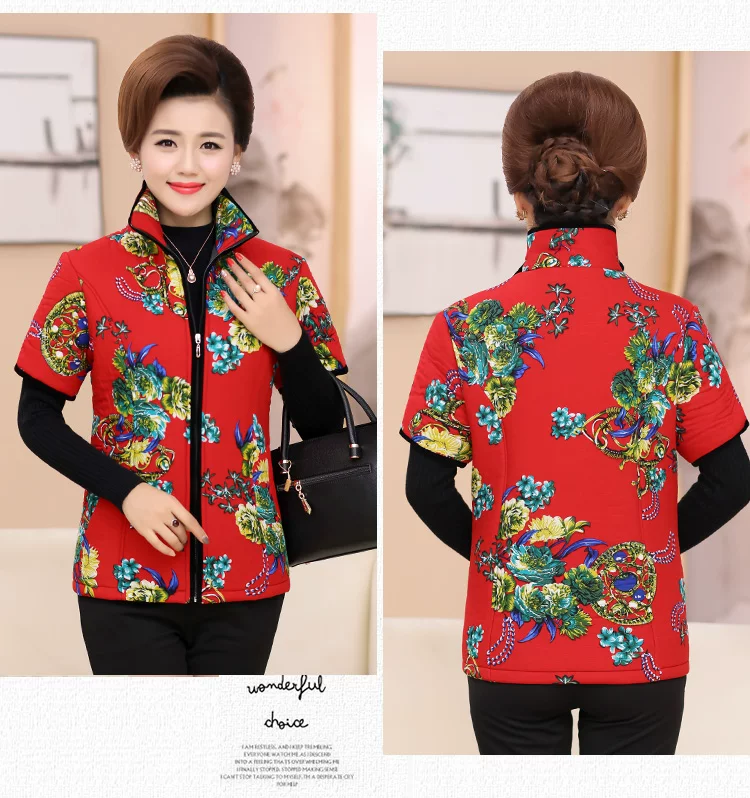 Người mẫu trung niên và người cao tuổi Trung Quốc áo dài tay cotton cho phụ nữ áo vest giữa mùa thu và mùa đông - Áo vest