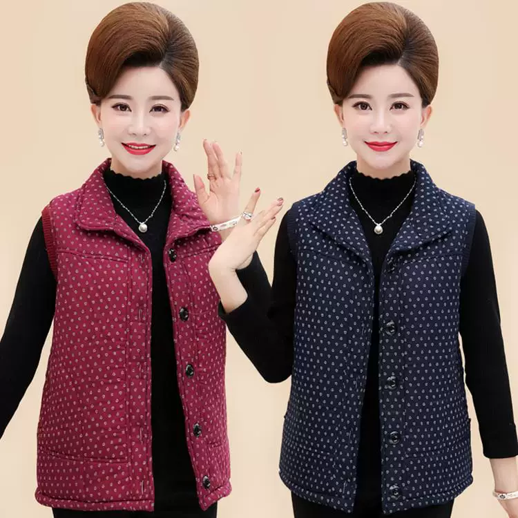 Áo khoác nữ trung niên và cao tuổi cho quần áo mùa thu / đông, quần áo của mẹ, áo vest, áo khoác cotton của phụ nữ lớn tuổi, áo ghi lê của bà, áo khoác ấm - Áo vest