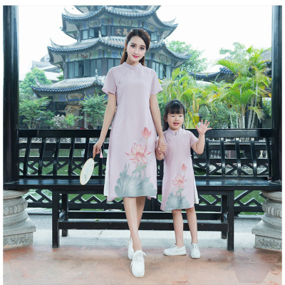 Bà mẹ-con váy mẹ và phụ nữ váy sườn xám guzheng trang phục váy Amoi 2020 cải tiến hàng ngày sườn xám phong cách cổ tích Trung Quốc - Trang phục dành cho cha mẹ và con
