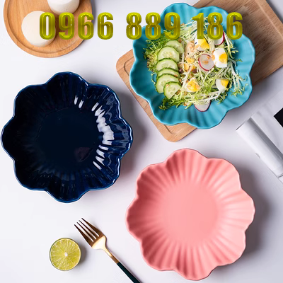 Đĩa gốm bốn sợi, bộ đồ ăn gia đình, đĩa cơm, đĩa súp, đĩa hình bông hoa, đĩa sâu kiểu Âu sáng tạo, món ăn sáng đẹp mắt - Đồ ăn tối