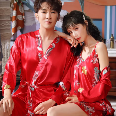 Cặp đôi đồ ngủ mùa hè lụa áo choàng tắm của nam giới lụa mỏng sexy sling váy ngủ nữ lụa ngủ 2 bộ giá - Night Robe