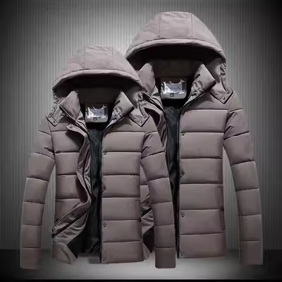 Áo khoác nam mùa đông đệm bông dài giữa áo khoác học sinh có mũ phiên bản Hàn Quốc của xu hướng giới trẻ Áo khoác đệm dày mùa đông Áo khoác bông mùa đông - Bông