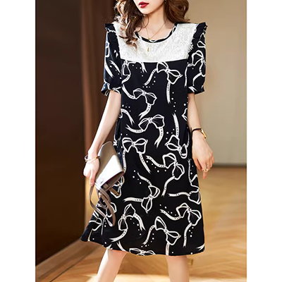 Váy mùa hè vĩnh cửu màu sắc mới của phụ nữ rỗng đính cườm ngắn tay áo voan ren H22080327 - Áo sơ mi chiffon ren