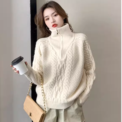 Áo len nữ cổ cao màu trung tính và giản dị, tay áo thả vai rộng và mỏng, dệt kim mùa đông sản phẩm mới CGSC4063 - Áo len