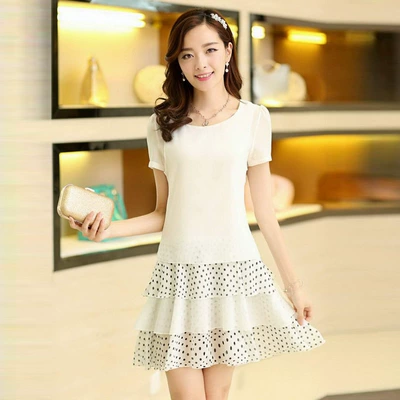 2019 mùa hè mới cộng với kích thước phụ nữ mùa xuân và mùa hè sản phẩm mới váy ngắn tay ngắn in họa tiết chấm bi cho phụ nữ - Sản phẩm HOT