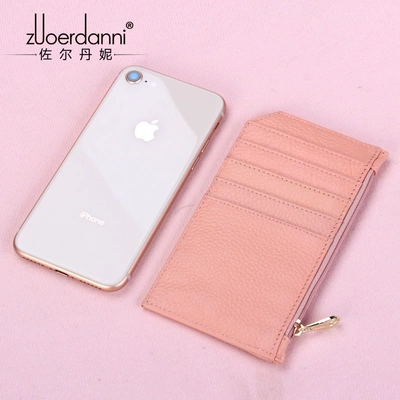 2019 phụ nữ mới siêu mỏng giữ thẻ ID da Hàn Quốc phiên bản Hàn Quốc dung lượng lớn dây kéo ví đựng thẻ tín dụng - Chủ thẻ