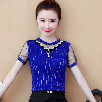 85 real shot ren trên cùng áo sơ mi nữ ngắn tay mùa hè 2020 phong cách mới kiểu dáng nước ngoài lưới áo sơ mi voan hàn quốc - Áo sơ mi chiffon ren