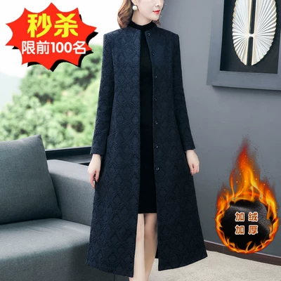 Áo khoác dài giữa áo mới của phụ nữ len len cashmere mùa đông nữ phụ nữ hai mặt len ​​phụ nữ nhung nhung chất béo mm - Áo len lót đôi