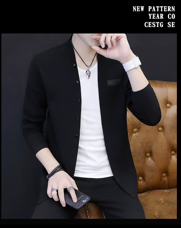 Áo len nam mùa thu 2019 mới mặc áo len dệt kim kiểu Hàn Quốc mỏng mảnh mỏng hợp thời trang áo len nam - Cardigan