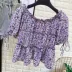 Áo quây nhỏ một bên vai áo voan hoa nữ mùa hè ren-up bong bóng tay ngắn tay áo bé gái ngọt ngào - Áo sơ mi chiffon ren