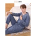 Bộ đồ ngủ cotton dài tay tiêu chuẩn Mỹ dành cho nam giới mùa xuân và mùa thu tất cả cotton thường kẻ sọc dịch vụ tại nhà Bộ đồ hai mảnh - Giống cái