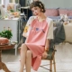 Bộ đồ ngủ nữ cotton tinh khiết mùa hè Hàn Quốc sinh viên ở nhà dịch vụ dễ thương dâu tây mỏng tay ngắn đồ ngủ rộng rãi cho bà bầu mùa hè - Đêm đầm