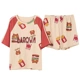 Đồ ngủ của phụ nữ mùa hè mỏng cổ tròn cotton phù hợp với bộ đồ ngắn tay dễ thương mô hình gấu hoạt hình lưới màu đỏ bùng nổ bình thường dịch vụ tại nhà - Giống cái