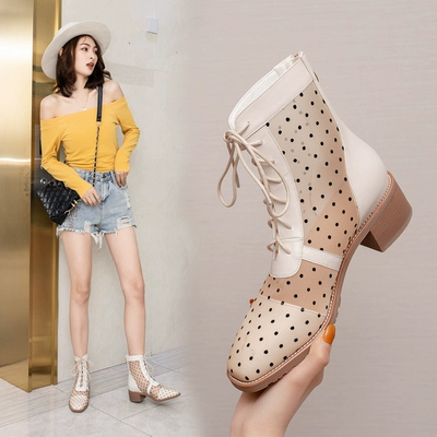 Giày bốt lưới đế giữa bằng da mùa hè năm 2020 Dép La Mã đế dày lưới màu đỏ đế rỗng ống cao xăng đan chấm bi sợi lưới bốt ngắn - Kính râm