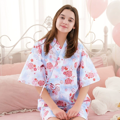 Hanori Dệt vải cotton nữ Áo ngủ mùa hè của phụ nữ Áo mỏng Nhật Bản Dịch vụ gia đình Áo dài cho học sinh - Đêm đầm