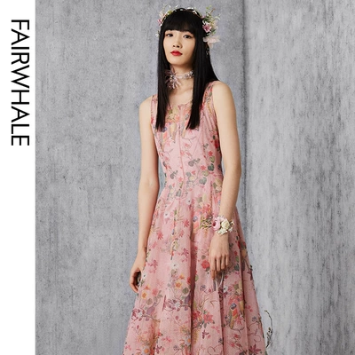 Mark Huafei Women 2020 Mùa hè Mới tay dài Đầm dài Pháp Váy in lãng mạn Thanh lịch - Váy eo cao