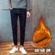 Mùa thu / mùa đông quần jeans nam màu đen thuần phù hợp với quần chân dày quần dài trẻ trung quần nhung nam - Quần jean