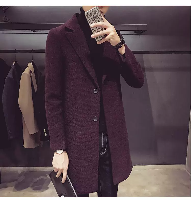 Mùa thu và mùa đông cùng với áo gió nhung nam áo khoác len dáng dài phong cách hàn quốc thời trang áo khoác nam mùa thu 2019 mới - Áo len