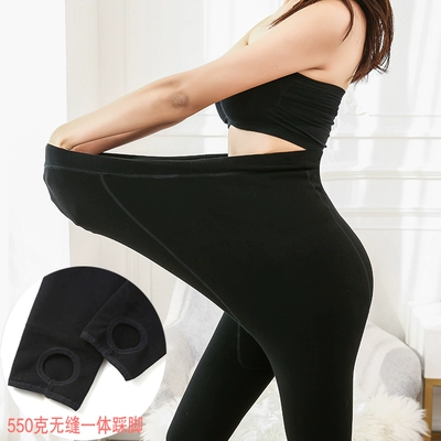 Quần legging bà bầu mùa đông cộng với nhung dày siêu dày size lớn eo cao ấm áp mặc ngoài chân chân quần đen - Phụ nữ mang thai quần / quần bụng