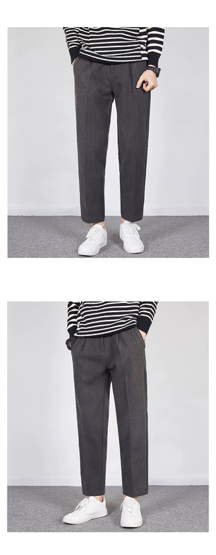 Quần len nam đơn giản, lỏng lẻo, quần ống rộng đơn giản, quần dài mùa thu và mùa đông mới, quần len dày 9 điểm - Quần