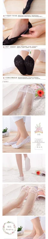 [Silicone chống trượt tất xung quanh] [3-5 đôi] Tất thuyền ren phụ nữ mùa siêu mỏng Vớ lụa nữ - Vớ