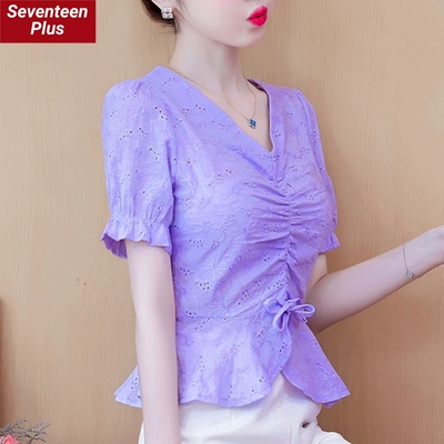 Thời trang áo sơ mi voan ngắn tay phụ nữ 2021 mới mùa hè ren ngắn trên váy áo sơ mi nhỏ eo eo phong cách phương tây - Áo sơ mi chiffon ren