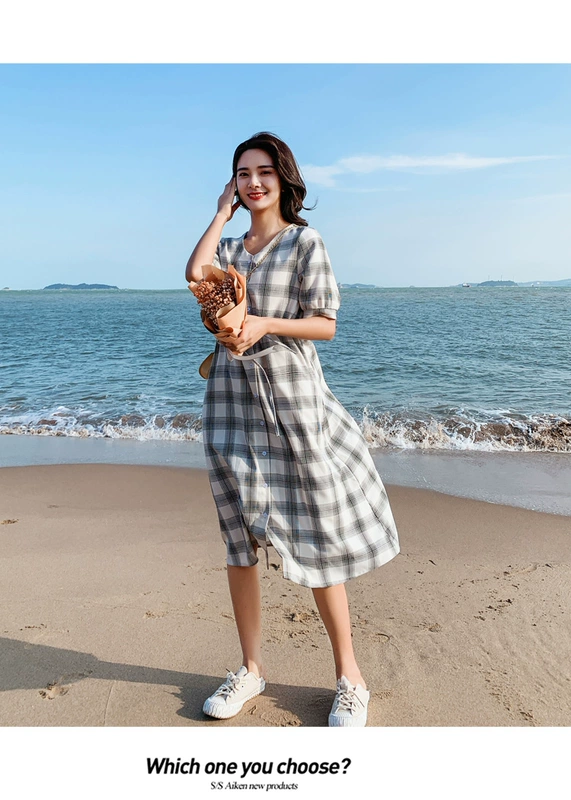 Váy kẻ sọc nữ 2020 mùa hè mới giảm béo hoa chuông Mori Hepburn phong cách retro cotton Pháp và váy dài lanh - Váy dài