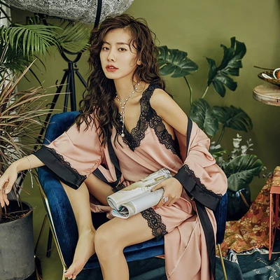 Váy ngủ cô dâu, bạn gái, váy ngủ dây lụa hai mảnh, váy ngủ lụa băng sexy, váy ngủ nữ, áo choàng tắm xuân hè - Night Robe