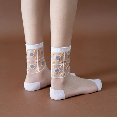 Vớ lụa thủy tinh của phụ nữ tất thủy triều Hàn Quốc trong suốt phần mỏng daisy nhỏ trong ống rừng lưới sợi cổ tích vớ thẻ siêu mỏng - Vớ sợi tre