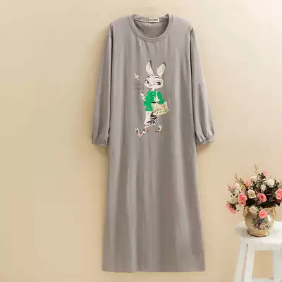 Wanwanjia hoạt hình nữ váy ngủ mùa xuân và mùa thu cộng với kích thước dài trên đầu gối dịch vụ tại nhà dài tay áo dài phụ nữ váy - Đêm đầm