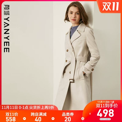 Yan Yu của phụ nữ Anh Áo khoác Rãnh của phụ nữ Chiều dài trung bình năm 2020 Mùa thu mới Đi làm Đơn giản Áo khoác mỏng thắt lưng ren - Trench Coat