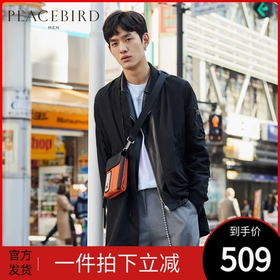 Áo choàng nam của nam giới Peacebird Áo dài nam dài trung bình Hàn Quốc Áo thêu mới bóng chày Cổ áo màu rắn - Áo gió