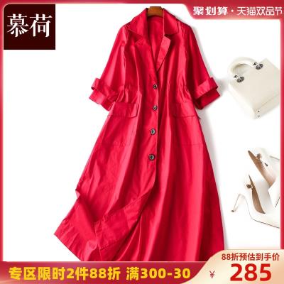 Áo gió đỏ nữ dài phần phong cách Anh 2020 Phụ nữ mùa xuân mới phong cách nước ngoài áo khoác mỏng - Trench Coat