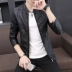 Áo khoác da cổ đứng mỏng dành cho nam giới áo khoác da PU mới của nam giới cùng với áo khoác da ngắn đẹp trai cashmere mùa thu và mùa đông - Quần áo lông thú