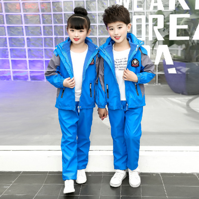 Áo khoác nam và nữ mùa xuân và mùa thu có thể tháo rời áo khoác ba trong một và áo gió nhung trường tiểu học đồng phục học sinh mẫu giáo - Đồng phục trường học / tùy chỉnh thực hiện