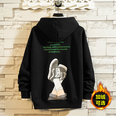 Áo len nam 2020 mùa thu và mùa đông cộng với nhung in áo khoác rời xu hướng mới áo pull có mũ cỡ lớn hàng đầu Hàn Quốc - Thể thao lông cừu / jumper
