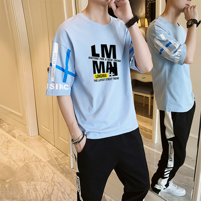 Áo phông ngắn tay phù hợp với nam xu hướng hoang dã mùa hè 2020 thủy triều thương hiệu Ins Spirit Chàng trai hai mảnh trang phục thể thao giản dị - Bộ đồ