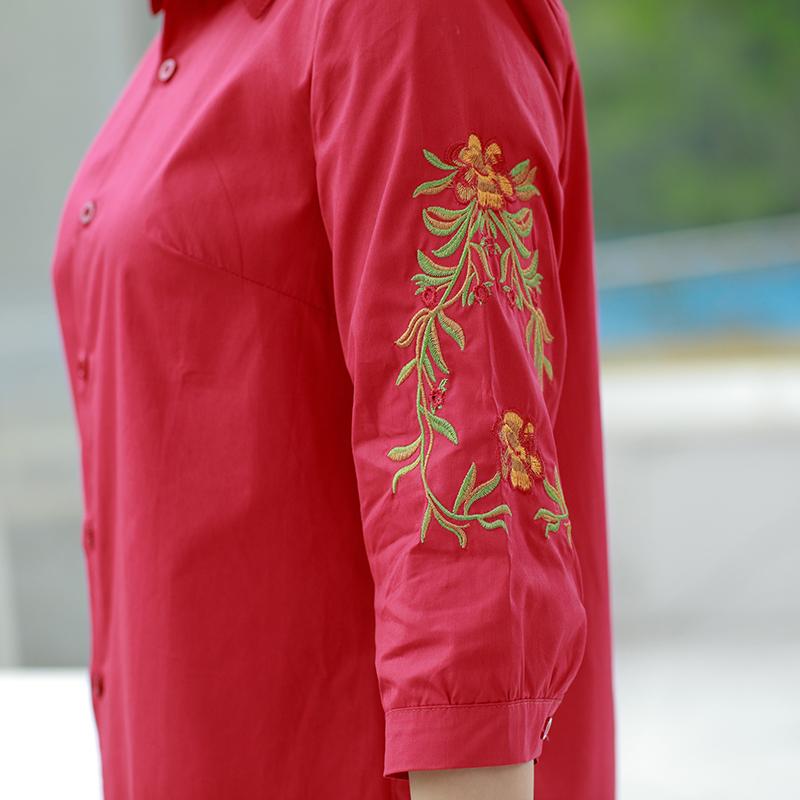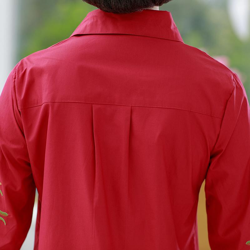 Áo sơ mi cotton phụ nữ trung niên và cao tuổi áo bà ba mùa xuân hè áo sơ mi thêu mẹ trung niên mới 4050 tuổi - Áo sơ mi