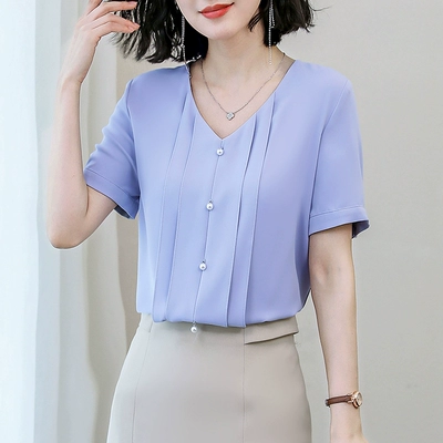 Áo voan nữ mùa hè tay ngắn 2020 xuân mới phong cách Hàn Quốc áo sơ mi nữ rộng rãi áo sơ mi thời trang áo sơ mi nhỏ - Áo sơ mi chiffon ren
