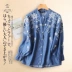 AP17-12 Áo sơ mi nữ đặc biệt mùa xuân dài tay áo rời nhẹ nhàng thêu ren Tencel Denim Phụ nữ hàng đầu - Áo sơ mi