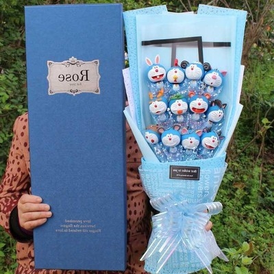 Bó búp bê Bó hoa hoạt hình Bó hoa ngày lễ tình nhân Ý tưởng cho ngày lễ tốt nghiệp của bạn gái Món quà Jingle Cat Blue Fatty - Hoa hoạt hình / Hoa sô cô la