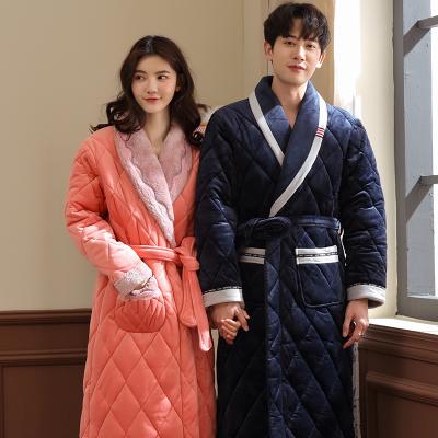 Bộ đồ ngủ đôi mùa đông cao cấp dành cho nữ dày với chất liệu cotton lông cừu san hô mùa đông nam cộng với nhung ấm dày mẫu dài - Night Robe